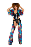Fabric: 90% POLYESTER 10% SPANDEX/ACRYLIC FAUX FUR TRIM