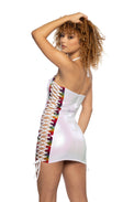 JR113 - Unicorn & Rainbow Lace-Up Mini Dress
