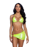 6643 - 2PC Metallic Iridescent Bikini Set with Heart Hardware - Neon Yellow / One Size is backordered and will ship as soon as it is back in stock.