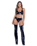Vinyl Zip-Up Cropped Top with Buckled Straps